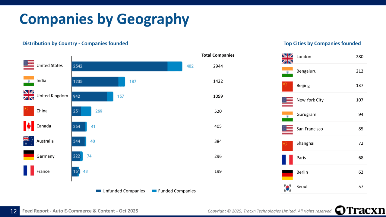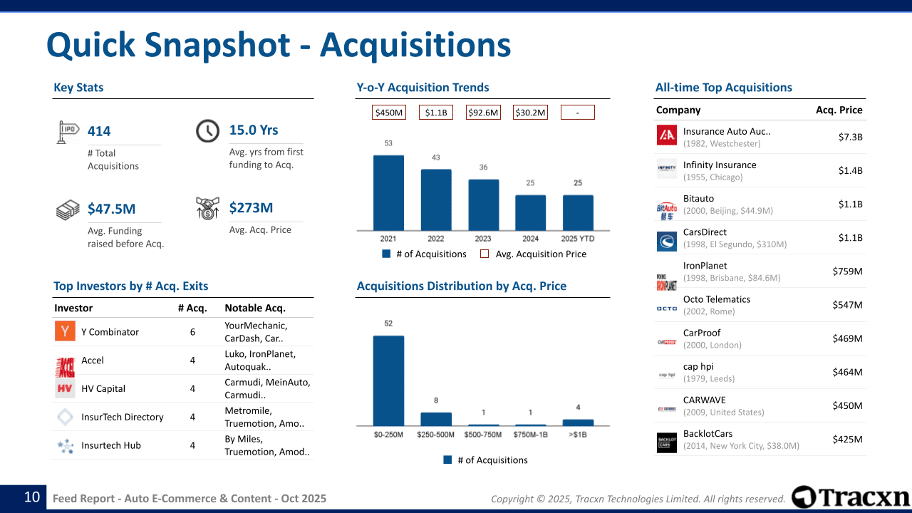 - Notable acquisitions in the Auto E-Commerce & Content sector include DriveElectric being acquired by Jurnileasing on Oct 06, 2025, Carmatic acquired by Informativ on Sep 18, 2025 and Car Body Lab acquired by Caliber on Sep 10, 2025.