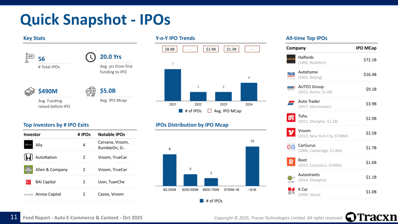 - In recent times, Roadzen in Jan 14, 2022 has been the most notable IPO within the Auto E-Commerce & Content sector.