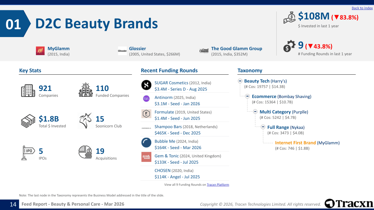 - Notable acquisitions in the B2B E-Commerce sector include Pahadi Local being acquired by Reliance Retail on Mar 10, 2026, Forest Essentials acquired by Estee Lauder on Mar 05, 2026 and SkinQ acquired by Puresta on Feb 24, 2026.