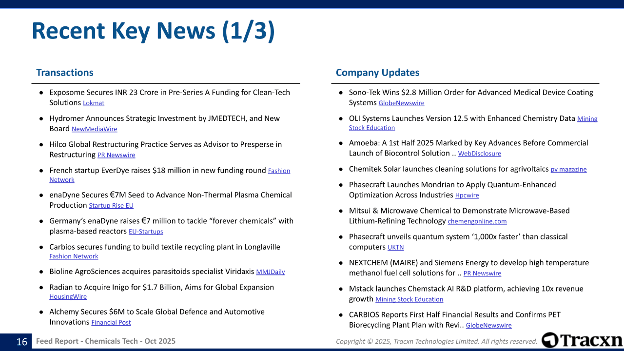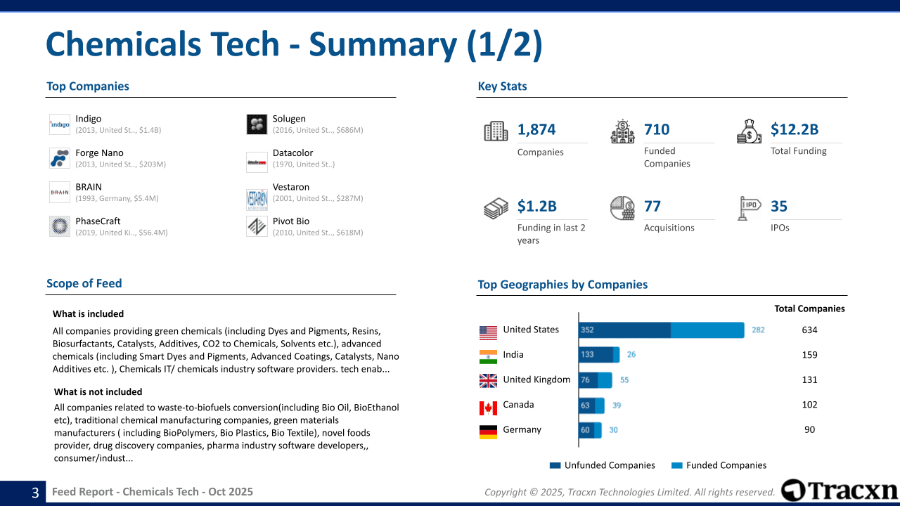 - Feed Scope: Companies that manufacture green chemicals and advanced chemicals. Companies that provide tech solutions and tech enabled services to chemicals industry