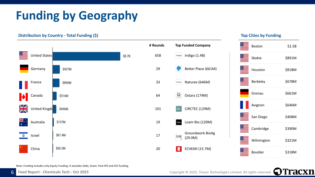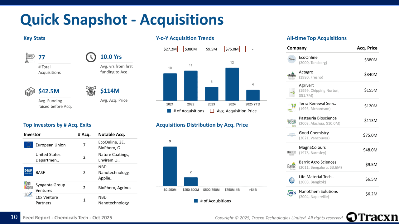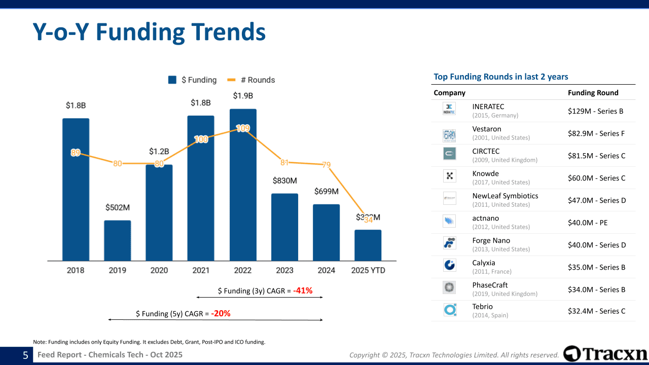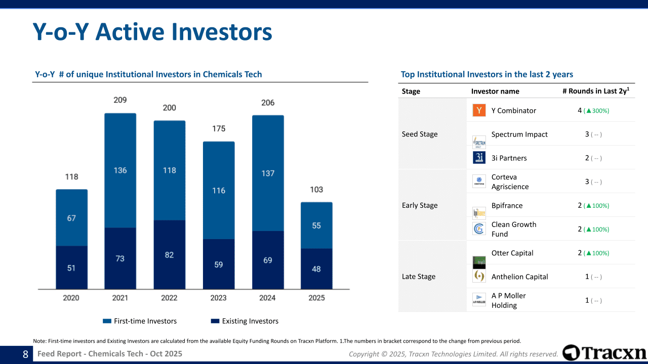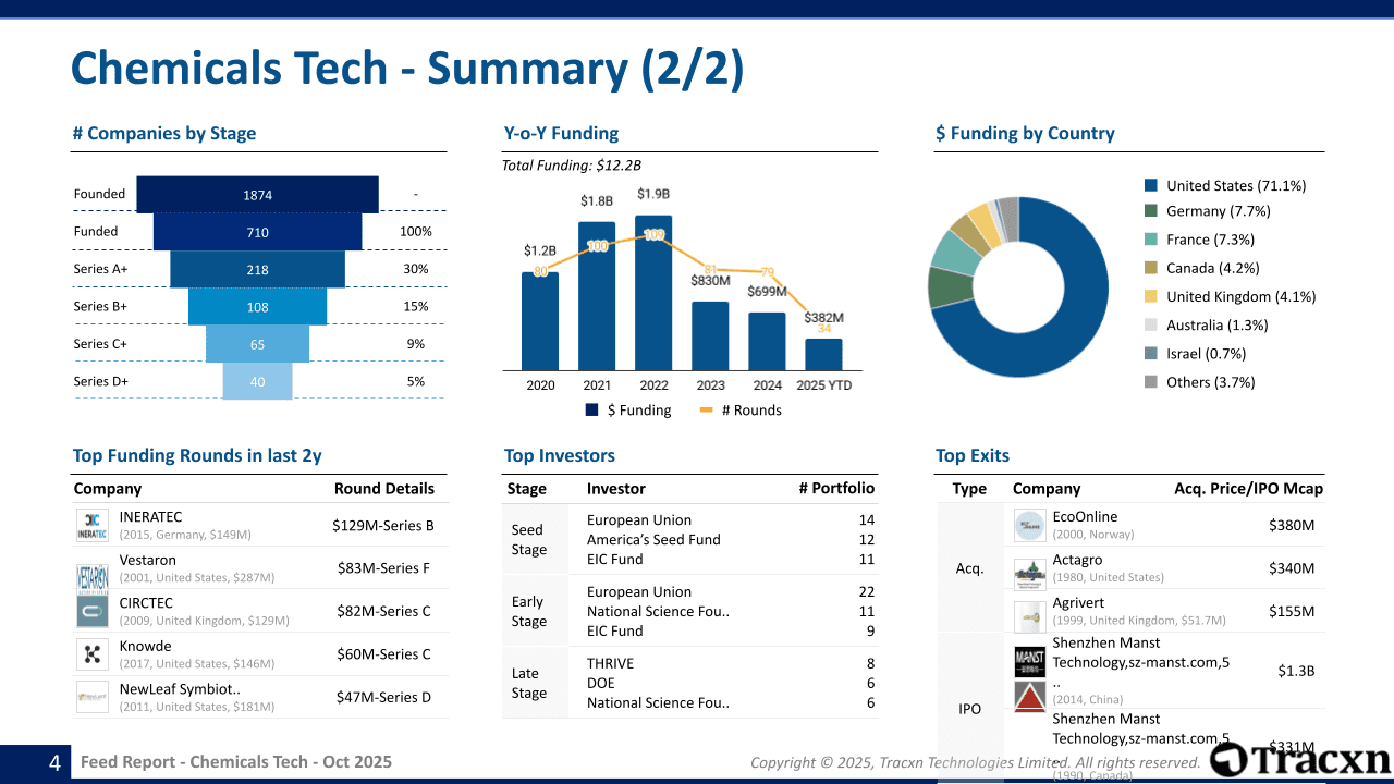Recent noteworthy Investments in Chemicals Tech sector include:Most Active Investors