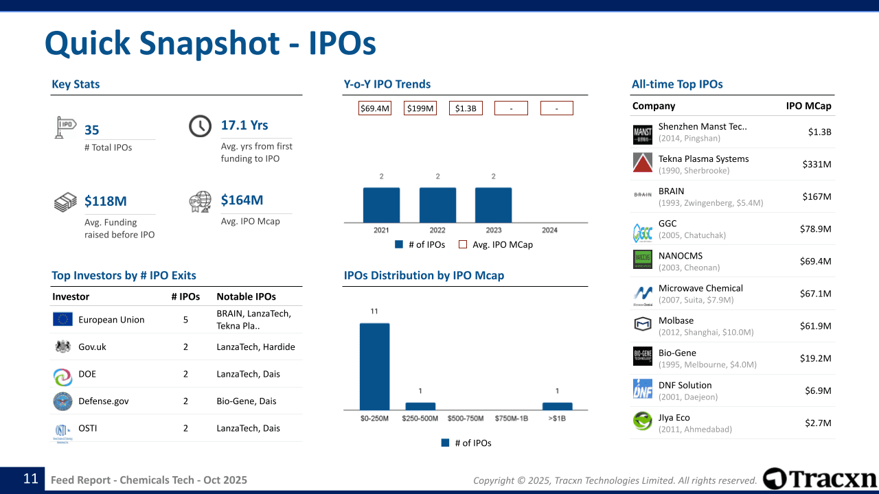 - In recent times, Circa in Mar 04, 2021 has been the most notable IPO within the Chemicals Tech sector.