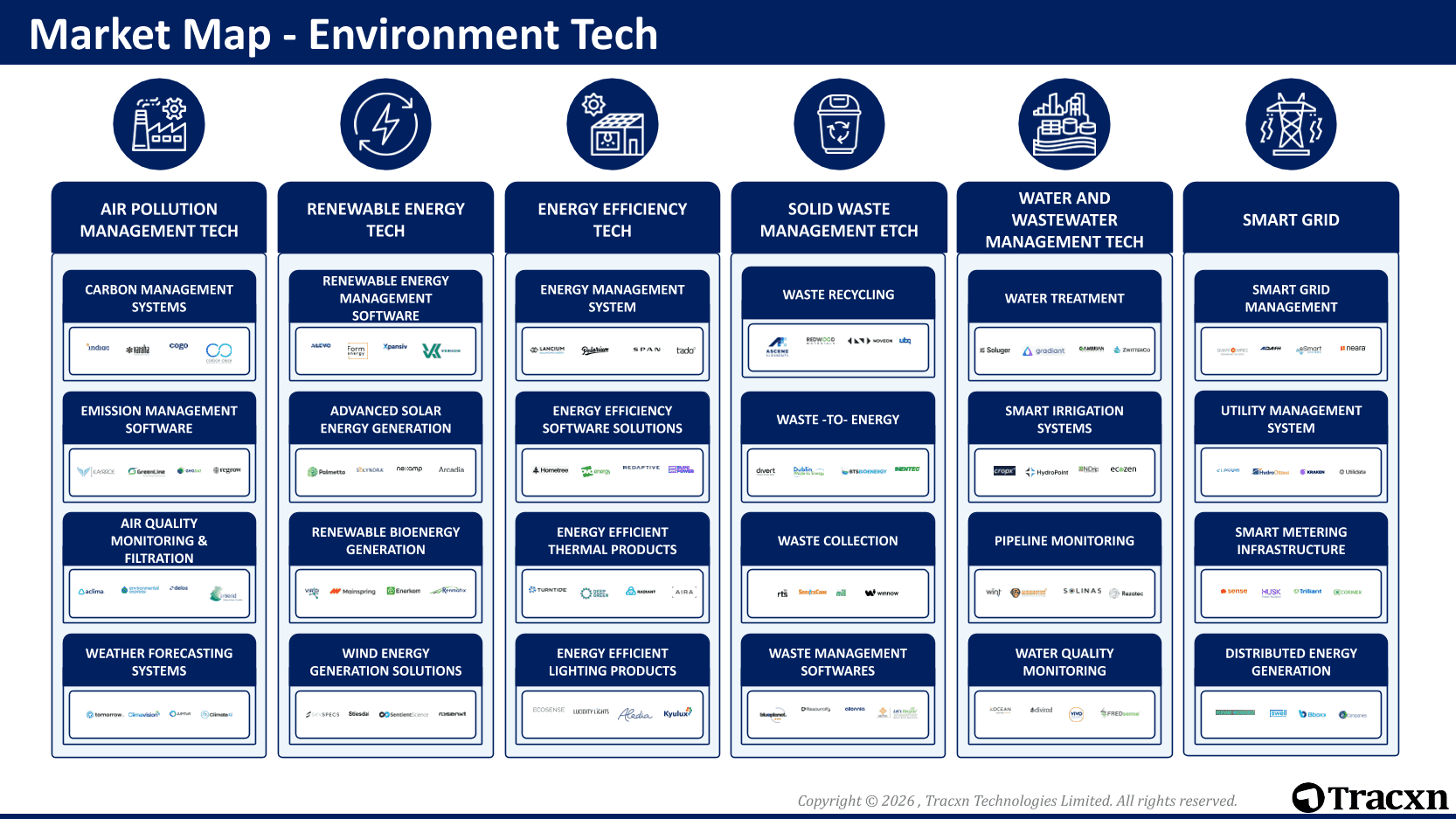 It excludes companies providing traditional water, solid waste and air management services. It also excludes offline environment consultanciesMarket Map of Environment Tech