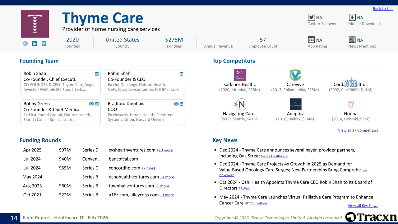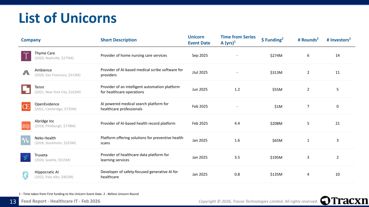 Recent noteworthy Investments in Healthcare IT sector include:- $320M, Series C round in Truveta on Jan 13, 2025